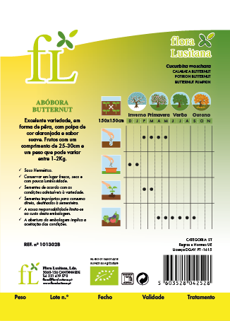 INFORMAÇÕES COMPLEMENTARES: A abóbora butternut possui forma piriforme e polpa de cor alaranjada, muito saborosa. A casca é lisa e possui uma tonalidade de cor avelã claro. Os frutos medem entre 25 e os 30cm e têm um peso que pode variar entre 1-2 Kg.