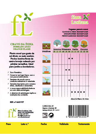 Sementes embaladas em saco hermético para manutenção da faculdade germinativa e vigor. Conservar sempre em local fresco, seco e com baixa luminosidade. Todas as informações dadas podem ser alteradas em função do clima, região ou maneio. Sementes impróprias para consumo humano destinadas apenas à sementeira.